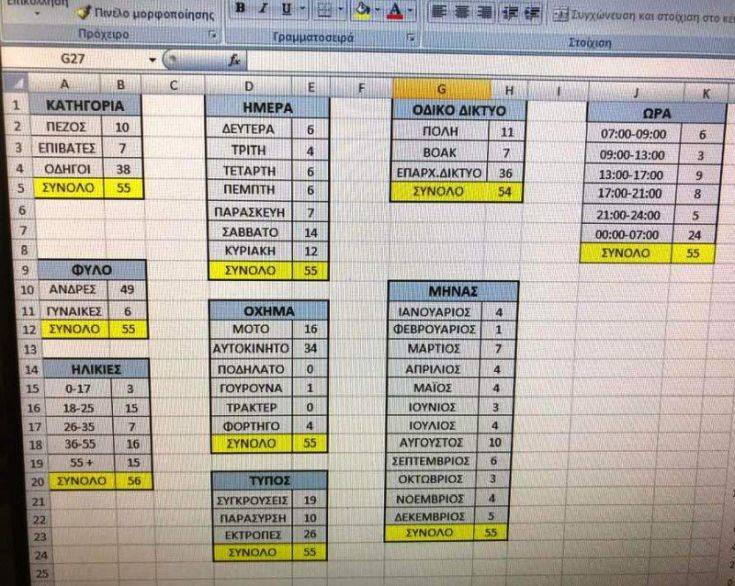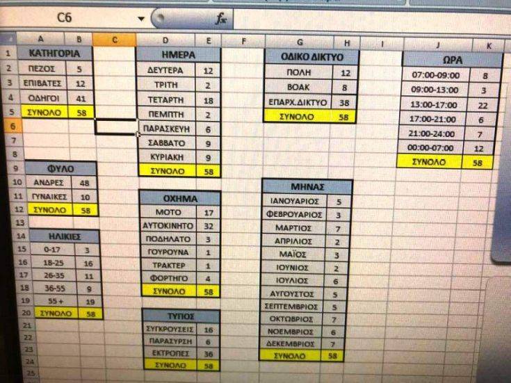 Δείτε την αντίστοιχη καταγραφή του κ. Λιονάκη για τους 58 νεκρούς σε τροχαία δυστυχήματα σε όλη την διάρκεια του 2018.