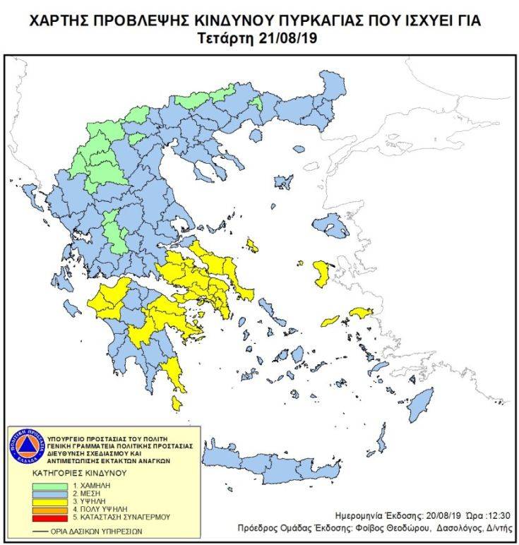 Ο κίνδυνος αφορά την Αττική, Ανατολική Στερεά, Σκύρο, Χίο, Σάμο, Ικαρία, Κύθηρα, Λακωνία, Αρκαδία, Αργολίδα, Κορινθία, Αχαΐα & Ηλεία, προειδοποιεί η Γενική Γραμματεία Πολιτικής Προστασίας.