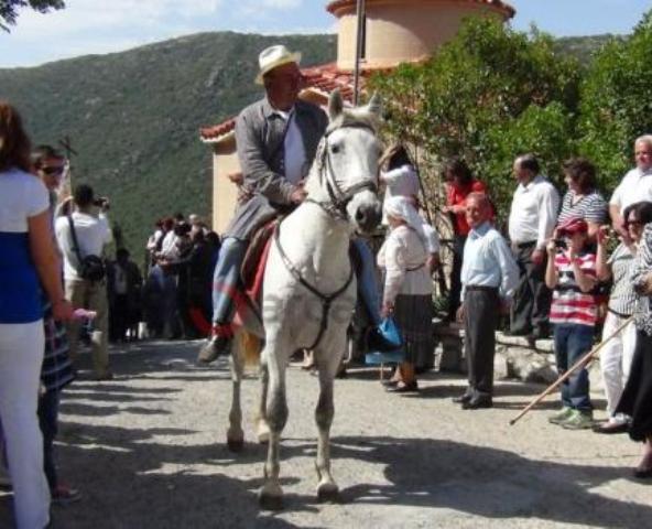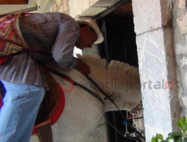 Εντυπωσιακή είναι η εικόνα του αλόγου να σκύβει το κεφάλι και να μπαίνει στο μοναστήρι της Παναγιάς.