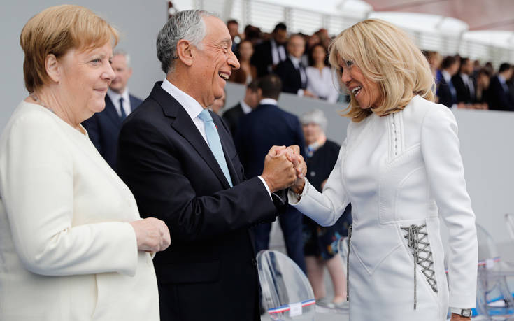 Η Μπριζίτ Μακρόν πλησίασε τη Μαρέβα Μητσοτάκη και της έδωσε το αριστερό της χέρι αντί για το δεξί που συνηθίζεται. Τότε υπήρξε μία στιγμή αμηχανίας, η οποία, όμως ξεπεράστηκε πολύ γρήγορα. Η πρώτη Κυρία της Γαλλίας έδωσε το αριστερό χέρι και στον Κυριάκο Μητσοτάκη.