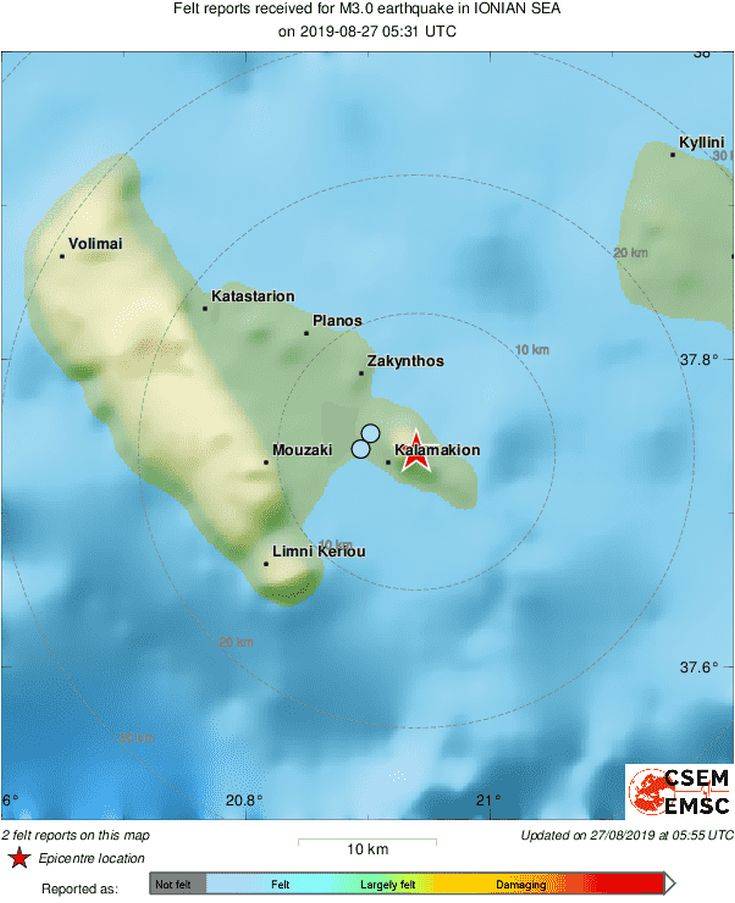 Το Ευρωμεσογειακό Ινστιτούτο εκτιμά τον σεισμό στα 3 Ρίχτερ.