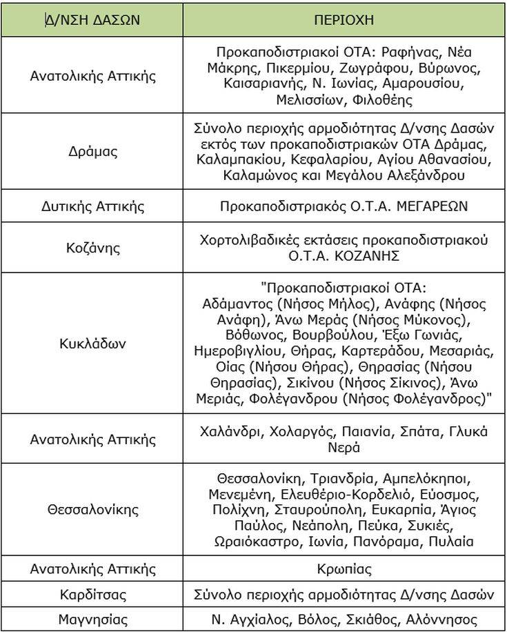 Ακολουθεί αναλυτικός πίνακας των περιοχών για τις οποίες ισχύει η παράταση προθεσμίας υποβολής αντιρρήσεων κατά αναρτημένων δασικών χαρτών.