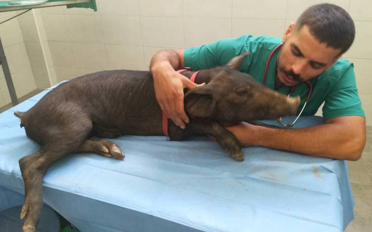 Ένας Χανιώτης, κτηνίατρος ο Γιάννης Μαρκαντωνάκης, ήταν ο μοναδικός που ανέλαβε το ρίσκο να πραγματοποιήσει την συγκεκριμένη επέμβαση στο γουρουνάκι, η οποία ολοκληρώθηκε με επιτυχία.