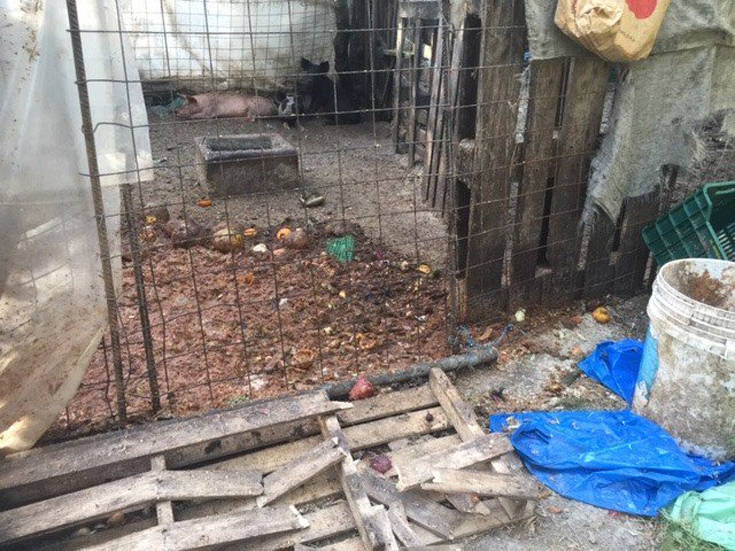 Η Νατάσα Μπομπολάκη μετέβη στο σημείο, μαζί με μέλη από τις παραπάνω ομάδες και διαπίστωσε ότι τριάντα ζώα ζούσαν σε άθλιες συνθήκες, υπήρχαν σάπιες τροφές, βρώμικο νερό, νεκρά ζώα, ζώα δεμένα με αλυσίδες, μία υγειονομική «βόμβα», όπως την αποκάλεσε η ίδια.
