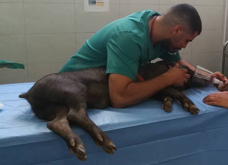«Τα γουρουνάκια αντιμετωπίζουν συχνά προβλήματα με την νάρκωση, καθώς μπορεί να εμφανίσουν κακοήθη υπερθερμία, ταχυαρρυθμίες οι οποίες μπορεί να οδηγήσουν μέχρι και στην ανακοπή. Είναι ζώα τα οποία αγχώνονται πολύ και για αυτό το λόγο οι στειρώσεις γίνονται όταν είναι βρέφη, ενώ δεν συνηθίζεται να γίνονται στειρώσεις με ολική αναισθησία. Συχνά οι στειρώσεις πραγματοποιούνται στις φάρμες με άλλες μεθόδους. Εμείς, αποφασίσαμε, λοιπόν να προχωρήσουμε στην επέμβαση, εφόσον κάναμε την προνάρκωση και είδαμε ότι όλα έβαιναν καλώς.