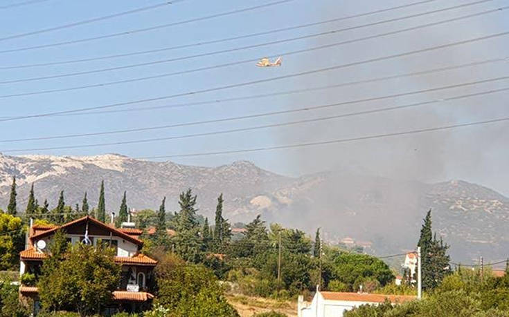 Στο σημείο επιχειρούν 33 πυροσβέστες με 13 οχήματα, πεζοπόρο τμήμα και τέσσερα αεροσκάφη.