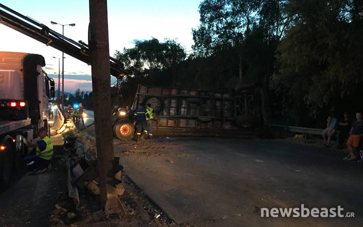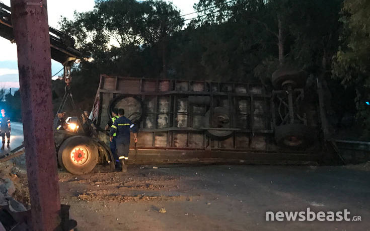 Τρία άτομα τραυματίστηκαν το απόγευμα, σύμφωνα με τις πρώτες πληροφορίες από την αστυνομία, όταν ανατράπηκε νταλίκα και συγκρούστηκε με αυτοκίνητο, στη λεωφόρο Αθηνών, στο Δαφνί.