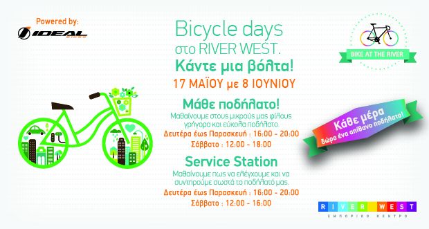 Το εμπορικό κέντρο River West προσκαλεί όλους τους φίλους του, μικρούς και μεγάλους, να «κάνουν μια βόλτα» στις Ημέρες Ποδηλάτου.