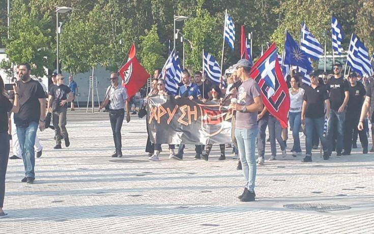 Τα μέλη της Χρυσής Αυγής έφτασαν με πορεία μέσω της Λ. Νίκης στο σημείο, φωνάζοντας συνθήματα.