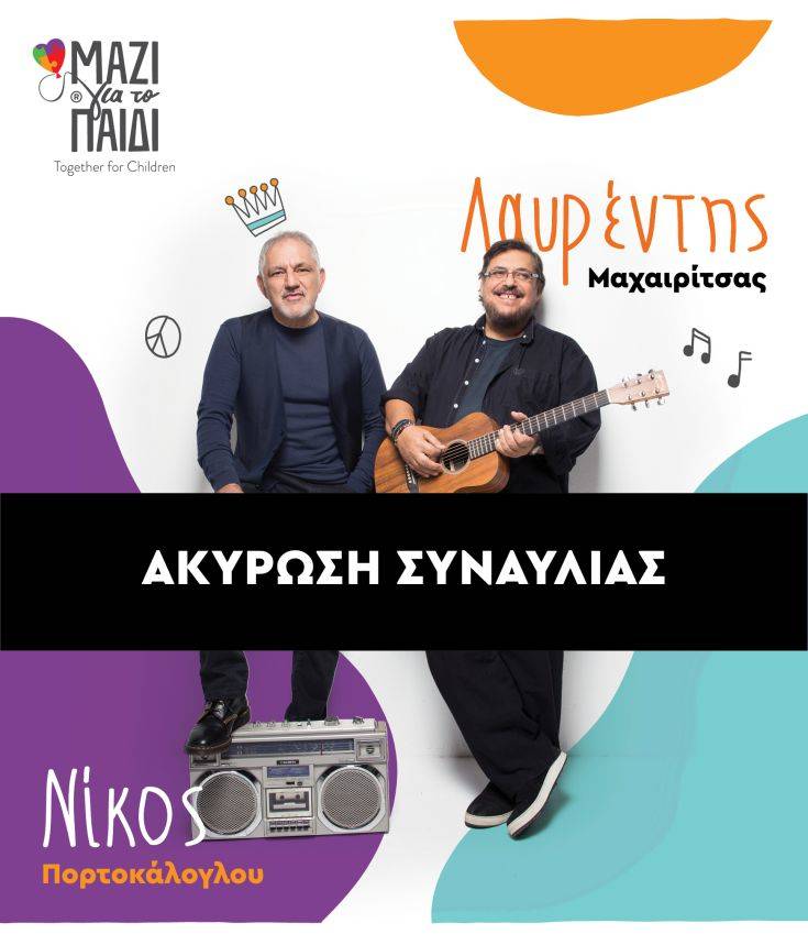 «Το ελληνικό πεντάγραμμο έχασε σήμερα έναν μεγάλο ερμηνευτή και τραγουδοποιό, τον αγαπημένο μας Λαυρέντη Μαχαιρίτσα. Η Ένωση “Μαζί για το Παιδί” εκφράζει τα θερμά της συλλυπητήρια στην οικογένεια και τους συνεργάτες του. Η προγραμματισμένη φιλανθρωπική συναυλία της Ένωσης, στο Ηρώδειο, για αύριο 10 Σεπτεμβρίου, τα έσοδα της οποίας θα ενίσχυαν το πρόγραμμα σίτισης άπορων παιδιών, ακυρώνεται.
