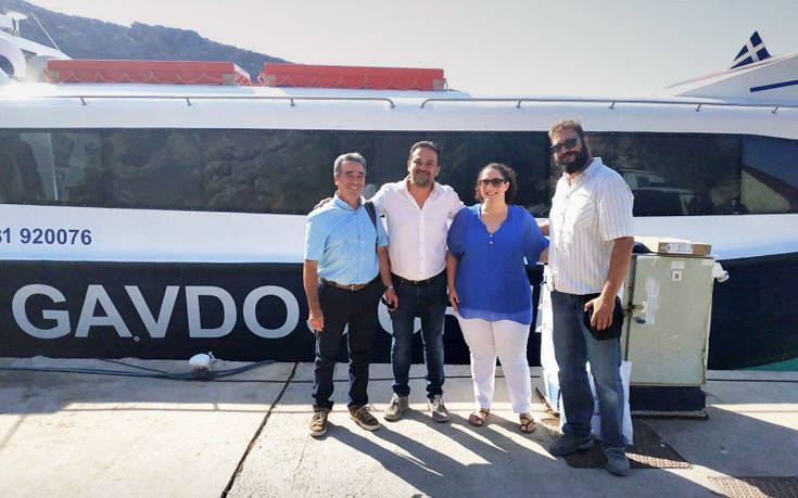 Η Χανιώτισσα δασκάλα Μαρία Δανά, μαζί με τον Διευθυντή Πρωτοβάθμιας Εκπαίδευσης Χανίων Μανώλη Μηλιαράκη, τον Περιφερειακό Σύμβουλο και τέως Αντιπεριφερειάρχη Παιδείας Γιάννη Παρασύρη και τον εκπαιδευτικό πληροφορικής Κώστα Βερονίκη, πήγαν το πρωί με το πλοίο στην Γαύδο.