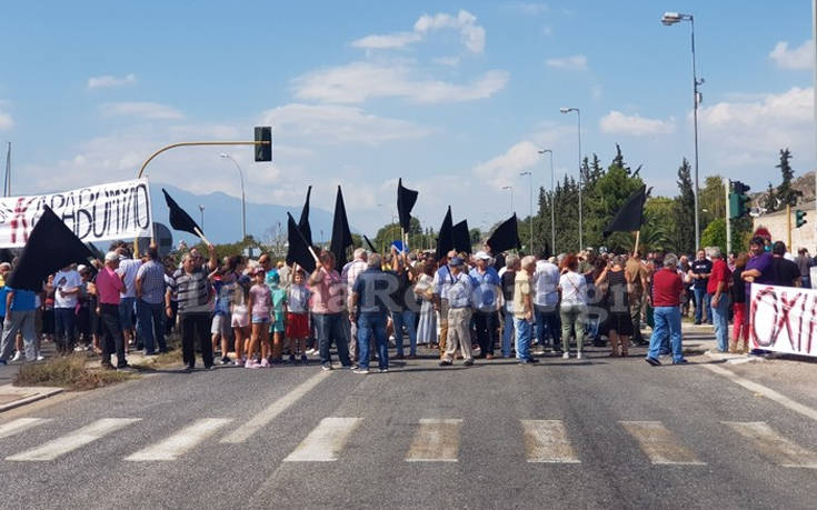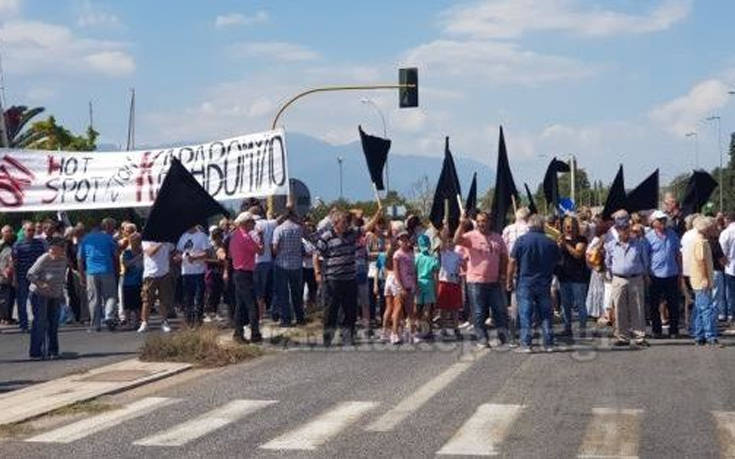 Οι κάτοικοι, με μαύρες σημαίες στα χέρια τους, έφτασαν με πορεία μέχρι τον κόμβο και σε συνεννόηση με την Αστυνομία προχώρησαν στον συμβολικό αποκλεισμό.