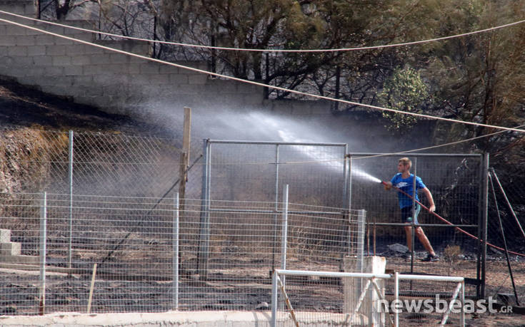 Σύμφωνα με την Πυροσβεστική οι φλόγες έχουν προκαλέσει μικρές ζημιές εξωτερικά σε κάποια σπίτια.