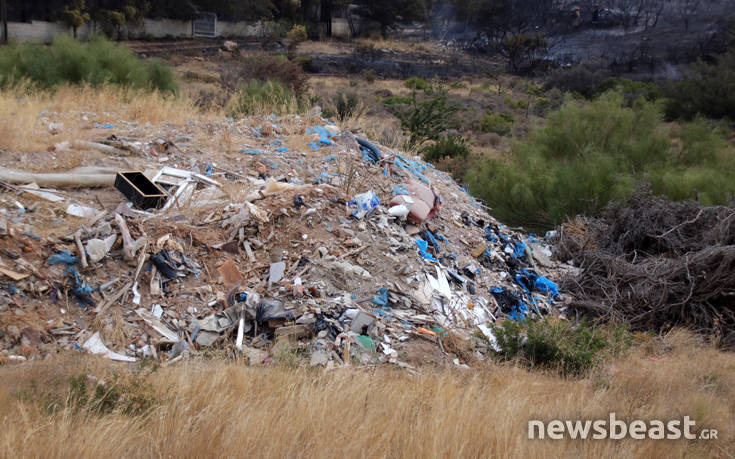 Πολλά σκουπίδια είτε σε σωρούς είτε μεμονωμένα πεταμένα σε διάφορα σημεία καθώς και σωροί από μπάζα ήταν έτοιμα να δώσουν «καύσιμη ύλη» στις φλόγες. Η γενική εικόνα ήταν ότι η περιοχή δεν είχε καθαριστεί γεγονός που θα μπορούσε να έχει βοηθήσει στην εξάπλωση της φωτιάς. Είναι ενδεικτικό άλλωστε ότι οικόπεδα που οι ιδιοκτήτες τους τα είχαν καθαρίσει η φωτιά δεν βρήκε «καύσιμα» και δεν πέρασε από μέσα.