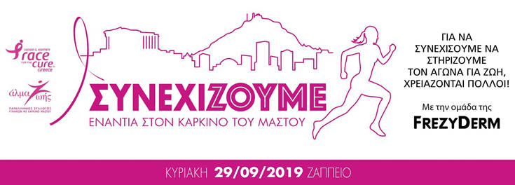 Ένας Αγώνας Δρόμου και ένας Περίπατος για καλό σκοπό! Αποδεικνύοντας έμπρακτα για ακόμα μία φορά την ευαισθητοποίησή της απέναντι στη νόσο του Καρκίνου του Μαστού, η FREZYDERM στηρίζει και φέτος τον Πανελλήνιο Σύλλογο Γυναικών «Άλμα Ζωής» Αθήνας και έχει την τιμή να αποτελεί επίσημο χορηγό του 11ου Greece Race for the Cure® που θα πραγματοποιηθεί την Κυριακή 29 Σεπτεμβρίου στο Ζάππειο.