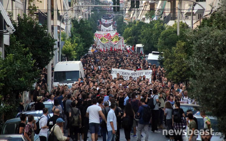 Στην κεφαλή της πορείας βρίσκεται η οικογένεια και οι φίλοι του Παύλου Φύσσα. Η διαδήλωση πρόκειται να κατευθυνθεί στα γραφεία της Χρυσής Αυγής στον Πειραιά.