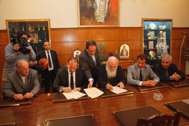 Αντιπροσωπεία του Ελληνικού Συνδέσμου Ανώνυμων Καλαθοσφαιρικών Εταιρειών (ΕΣΑΚΕ), με επικεφαλής τον Πρόεδρο του Δ.Σ. κ. Γιώργο Χαλβατζάκη, επισκέφτηκε το πρωί την Ιερά Αρχιεπισκοπή Αθηνών, προκειμένου να υπογραφεί το σύμφωνο συνεργασίας για την ενίσχυση του κοινωνικού έργου σε ευπαθείς ομάδες. Το επαγγελματικό μπάσκετ στηρίζει με όλες του τις δυνάμεις τον Φιλανθρωπικό Οργανισμό «ΑΠΟΣΤΟΛΗ».
