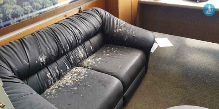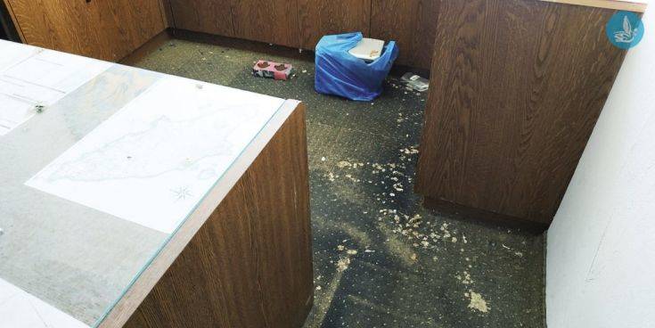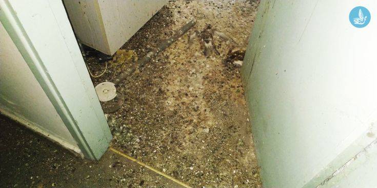 Ειδικά στον χώρο που ήταν κάποτε κουζίνα έχουν συσσωρευτεί πτώματα πουλιών και ακαθαρσίες που για να απομακρυνθούν χρειάζεται ειδικό συνεργείο και απολύμανση.