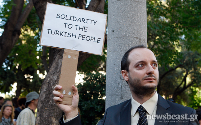«Θέλουμε να εκφράσουμε την αμέριστη αλληλεγγύη μας στον Τουρκικό λαό» δήλωσε ο Παναγιώτης Λαφαζάνης, κοινοβουλευτικός εκπρόσωπος του ΣΥΡΙΖΑ-ΕΚΜ, και κατήγγειλε το γεγονός που η Ελληνική Αστυνομία εμπόδισε την θυροκόλληση ψηφίσματος στην τουρκική πρεσβεία, από αντιπροσωπεία των διαδηλωτών.