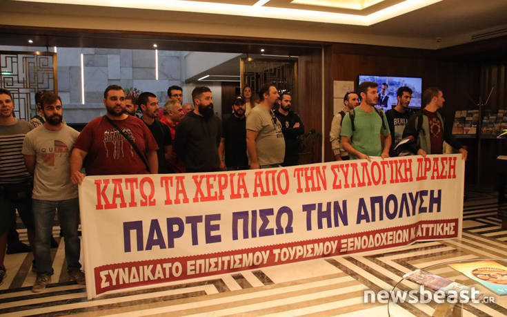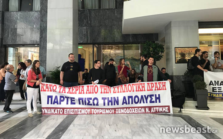 Κινητοποίηση διαμαρτυρίας σε ξενοδοχείο στο κέντρο της Αθήνας πραγματοποίησε το Συνδικάτο Επισιτισμού – Τουρισμού – Ξενοδοχείων του νομού Αττικής.