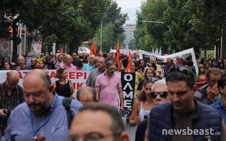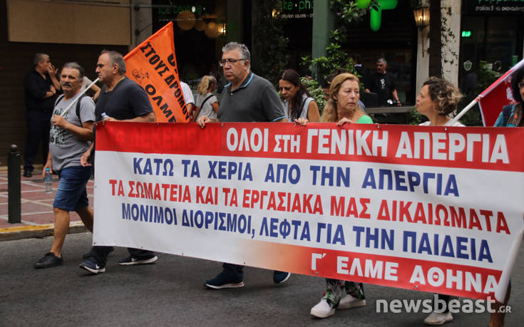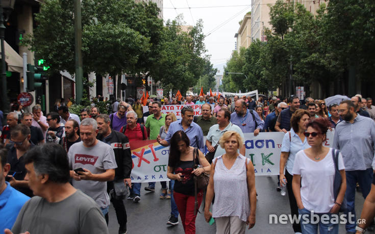 Με κεντρικά συνθήματα «καταργούν τις ΣΣΕ, χειραγωγούν τα συνδικάτα, αντιδρούμε, απεργούμε», καθώς επίσης και «κάτω τα χέρια από τα συνδικάτα, όχι στην ιδιωτικοποιηση της επικουρικής ασφάλισης», οι διαδηλωτές συγκεντρώθηκαν νωρίτερα στην πλατεία Κλαυθμώνος.