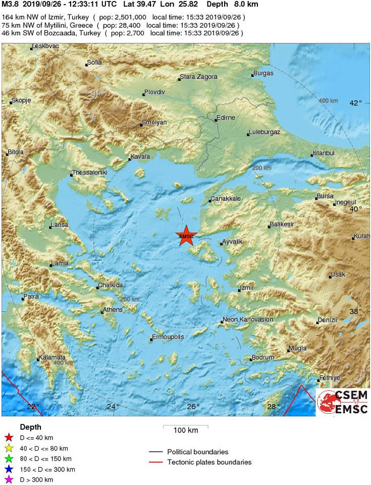 Σεισμός σημειώθηκε πριν από λίγα λεπτά κοντά στη Λέσβο, με το επίκεντρο να εντοπίζεται 73 χιλιόμετρα βορειοδυτικά της Μυτιλήνης.