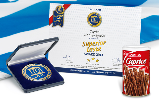 Τα Caprice, ένα από τα αγαπημένα προϊόντα της ελληνικής εταιρείας μπισκότων Παπαδοπούλου, διακρίθηκαν στα Διεθνή Βραβεία Ανώτερης Γεύσης 2013 συγκεντρώνοντας την υψηλότερη συνολική βαθμολογία με 3 αστέρια.
