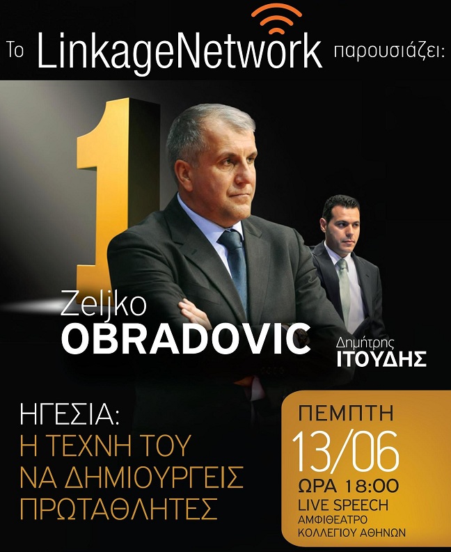 Το Linkage Network, η πρότυπη σχολή ηγεσίας της μεγαλύτερης εταιρίας συμβούλων επιχειρήσεων σε θέματα ηγεσίας διεθνώς, παρουσιάζει τον σπυδαίο προπονητή, ο οποίος θα αναπτύξει, μέσα από τα προσωπικά του βιώματα και την τεράστια του εμπειρία, θέματα ηγεσίας, σε μια διαδραστική ομιλία με τίτλο «Ηγεσία: Η Τέχνη του να δημιουργείς Πρωταθλητές».