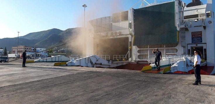Για τη φωτιά στο πλοίο εξέδωσε ανακοίνωση το λιμενικό. Αυτή αναφέρει τα εξής: