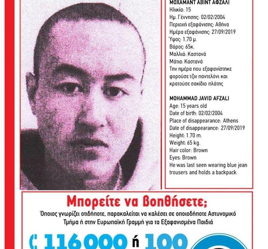 Συναγερμός έχει σημάνει για την εξαφάνιση 15χρονου. Εξαφανίστηκε από την περιοχή της Αθήνας, την Παρασκευή το απόγευμα, ο Μοχαμάντ Αβίντ Αφζαλί.