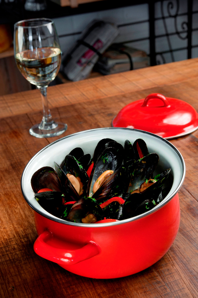 • COZZE TAORMINA: Κατσαρολάκι με αχνιστά μύδια σε ελαφριά σάλτσα κρασιού και μυρωδικών