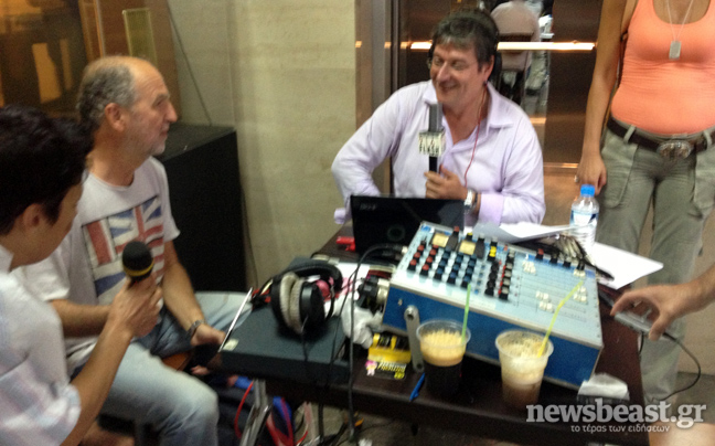 Στο ισόγειο της ΕΡΤ, δημοσιογράφοι του Flash εκπέμπουν επίσης live πρόγραμμα.