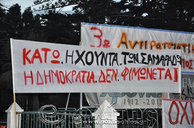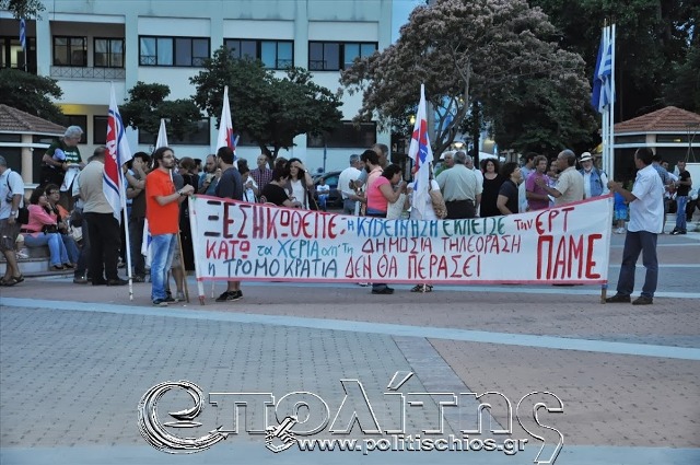 Την αντίθεσή τους με τους χειρισμούς της Κυβέρνησης Σαμαρά έκαναν σύνθημα εκατοντάδες Χιώτες πολίτες που το βράδυ της Τετάρτης ανταποκρίθηκαν στο κάλεσμα των συνδικαλιστικών φορέων του νησιού και έδωσαν το παρόν στην πορεία συμπαράστασης προς τους εργαζομένους της ΕΡΤ.