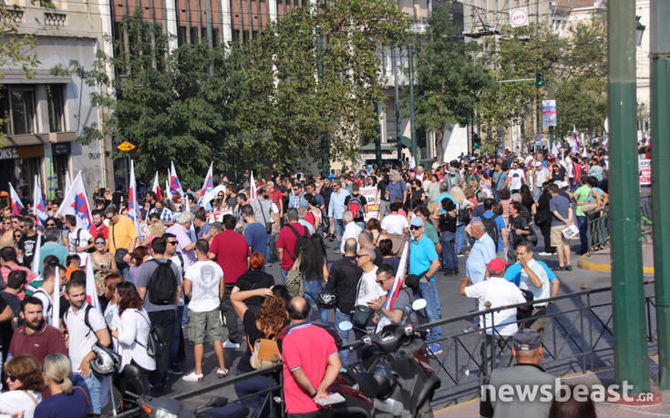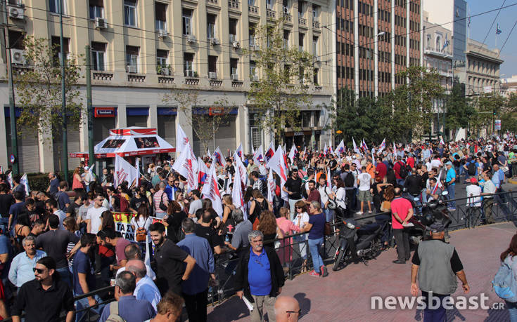 Τα μέλη του ΠΑΜΕ μετά τις κατά τόπους προσυγκεντρώσεις, βρίσκεται στον χώρο των Προπυλαίων όπου πραγματοποιείται η προγραμματισμένη του συγκέντρωση ενώ μετά ακολουθεί πορεία στη Βουλή.