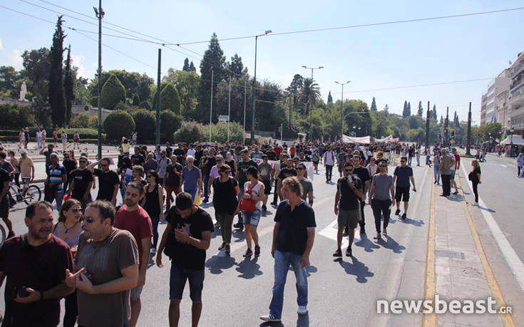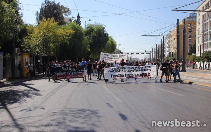 Μέλη της ΓΣΕΕ, συνδικάτων, πρωτοβάθμιων σωματείων και αυτοοργανωμένων συλλογικοτήτων καθώς και φοιτητικοί σύλλογοι πορεύτηκαν από την πλατεία Κλαυθμώνος μέσω στης Σταδίου προς το σύνταγμα και τη Βουλή.