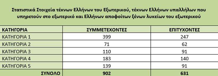 Ανακοινώθηκαν τα ονόματα των εισαγομένων στην Τριτοβάθμια Εκπαίδευση των τέκνων Ελλήνων του Εξωτερικού, των τέκνων Ελλήνων υπαλλήλων που υπηρετούν στο εξωτερικό και των Ελλήνων αποφοίτων ξένων λυκείων του εξωτερικού.