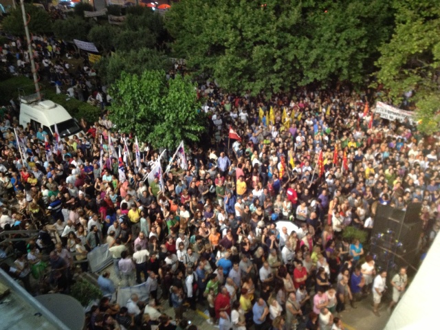 Πλήθος κόσμου συγκεντρώνεται και σήμερα στο ραδιομέγαρο της ΕΡΤ στην Αγία Παρασκευή σε ένδειξη συμπαράστασης στους εργαζόμενους της δημόσιας τηλεόρασης.