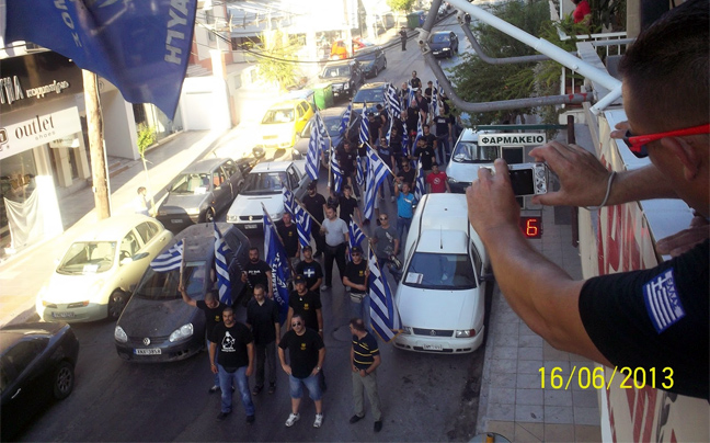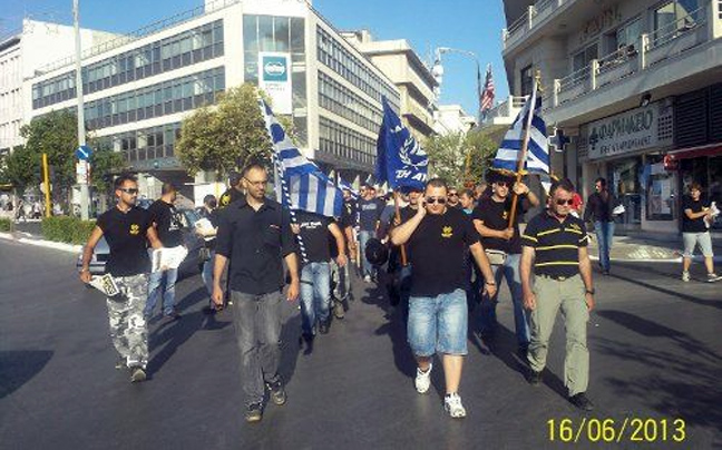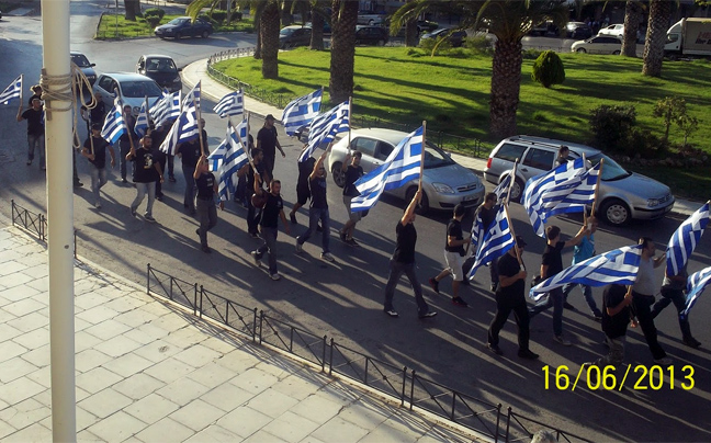 Τα μέλη της Χρυσής Αυγής διέσχισαν τους κεντρικούς δρόμους της πόλης και μοίρασαν υλικό με τις θέσεις τους.
