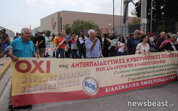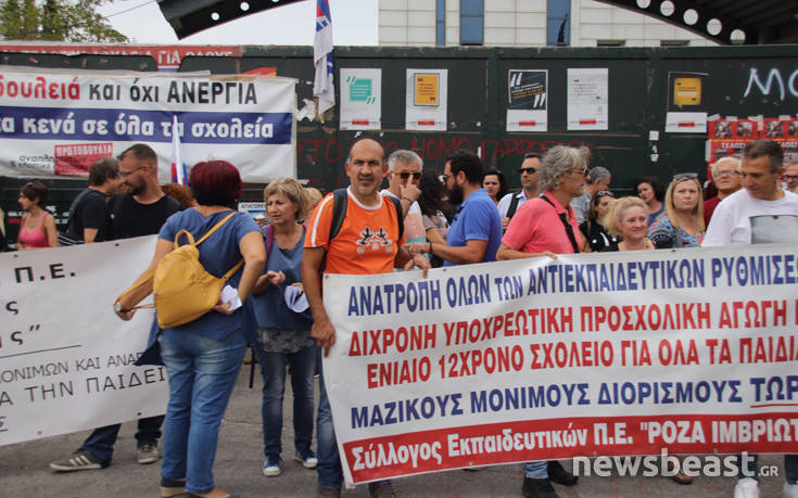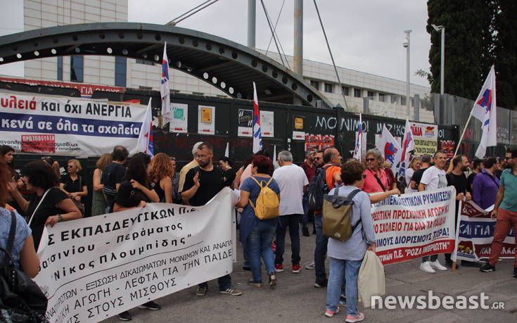Συγκέντρωση διαμαρτυρίας έξω από το υπουργείο Παιδείας κάνουν αυτή την ώρα σύλλογοι εκπαιδευτικών, με την ΟΛΜΕ να έχει κηρύξει διευκολυντική στάση εργασίας 11πμ – 2μμ για το πρωινό ωράριο και αντίστοιχες τρίωρες για το απογευματινό και το εσπερινό ωράριο.