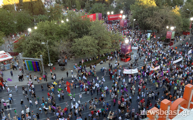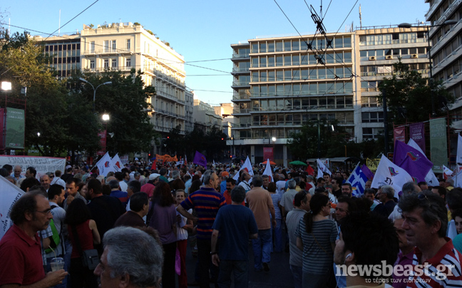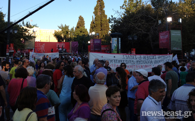Πλήθος κόσμου έχει συγκεντρωθεί αυτή την ώρα στο Σύνταγμα, όπου πραγματοποιείται η συγκέντρωση του ΣΥΡΙΖΑ, κατά την οποία θα μιλήσει ο πρόεδρος του κόμματος, Αλέξης Τσίπρας.