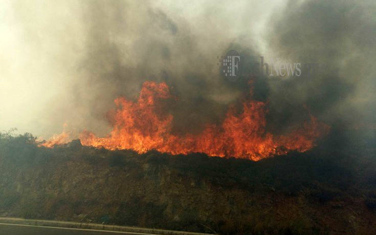 Υπό έλεγχο η φωτιά που ξέσπασε στην είσοδο της πόλης του Ρεθύμνου από τον δρόμο που οδηγεί στον Άγιο Βασίλειο.