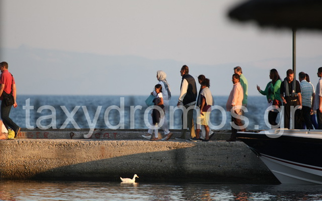 Ο ίδιος και τα μέλη της συνοδείας του κινούνται διακριτικά με πλωτά μέσα στις παραλίες του νησιού, απολαμβάνοντας, στην διάρκεια της παραμονής τους, το τοπίο και την θάλασσα.