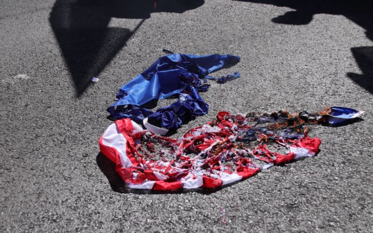 Μετά από αρκετά λεπτά τα πνεύματα ηρέμησαν, με την πορεία του ΠΑΜΕ να καταλήγει στην αμερικάνικη πρεσβεία, όπου τα μέλη του έκαψαν μία σημαία των ΗΠΑ.