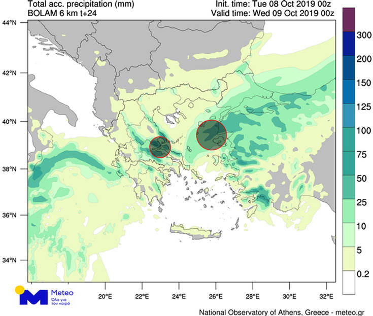 Ενδεικτικά, σύμφωνα με τη μετεωρολογική υπηρεσία meteo του Εθνικού Αστεροσκοπείου Αθηνών, ο μετεωρολογικός σταθμός στη Ζαγορά Πηλίου, από τη Δευτέρα 07/10 έως και τις πρωινές ώρες της Τρίτης 08/10 (09:00), έχει καταγράψει 187 mm βροχής. Υπενθυμίζεται, ότι 1 mm βροχής αντιστοιχεί σε 1 λίτρο νερού σε επιφάνεια 1 τετραγωνικού μέτρου.