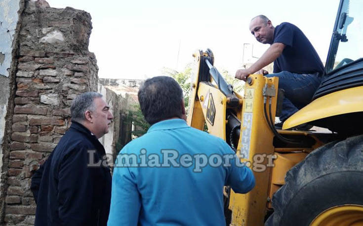 Στο ξεκίνημα των εργασιών κατεδάφισης βρέθηκε ο Δήμαρχος Λαμιέων Θύμιος Καραΐσκος, ενώ την επίβλεψη είχε ο αρμόδιος για τεχνικά θέματα Αντιδήμαρχος Κώστας Σταυρογιάννης.