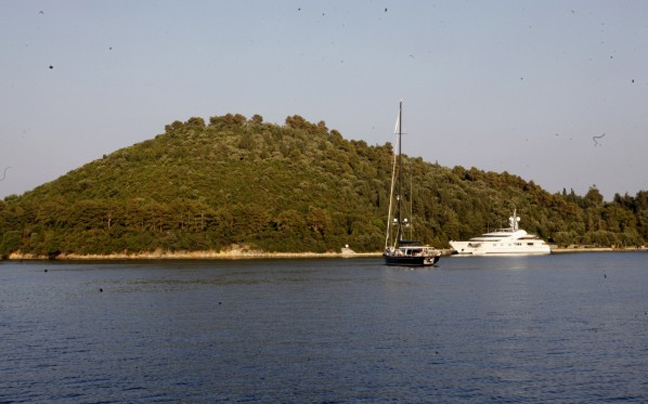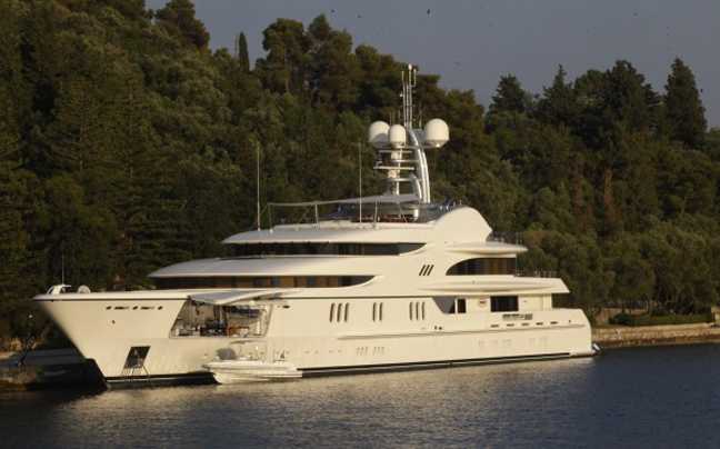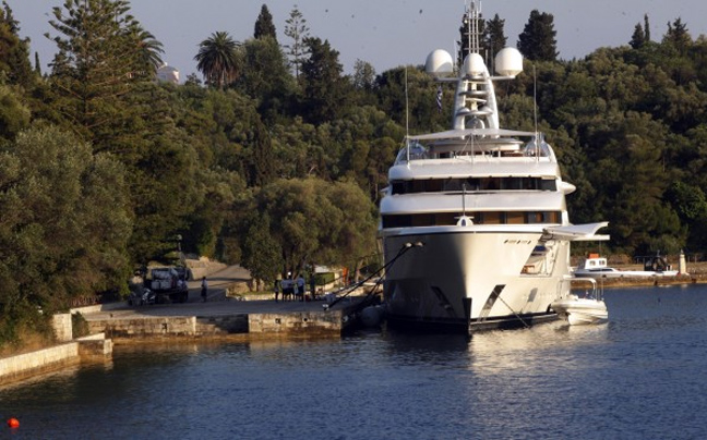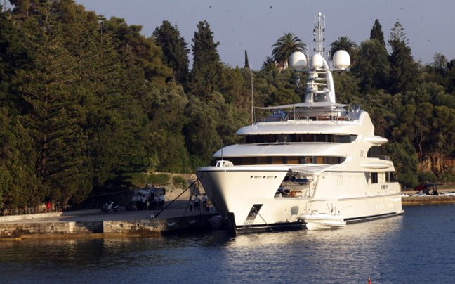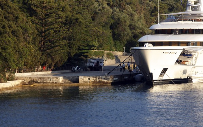 Η θαλαμηγός του Ρώσου μεγιστάνα έχει δέσει στο νησί με φόντο την περίφημη ροζ βίλα του Ωνάση.