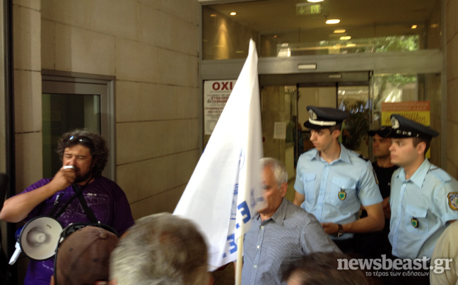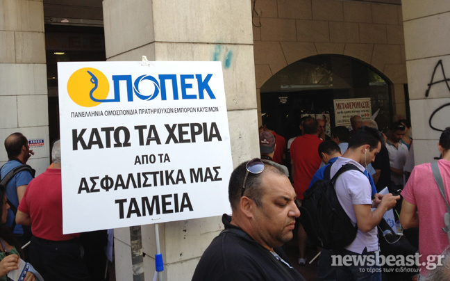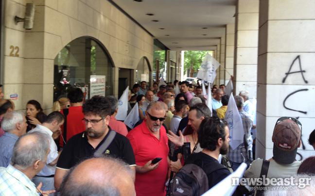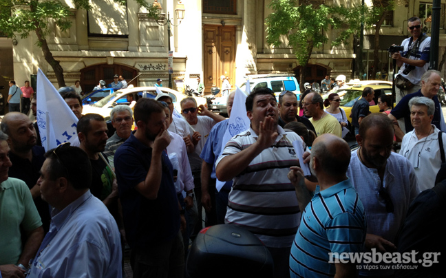 Οι συγκεντρωμένοι διαμαρτύρονται για τα προβλήματα του ασφαλιστικού τους φορέα.