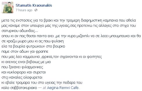 Ο Στ. Κραουνάκης, σε ανάρτησή του στο Facebook, αναφέρει: