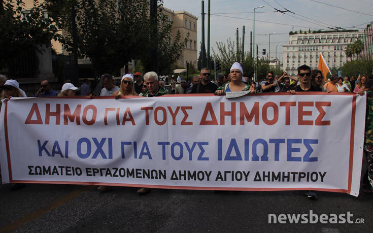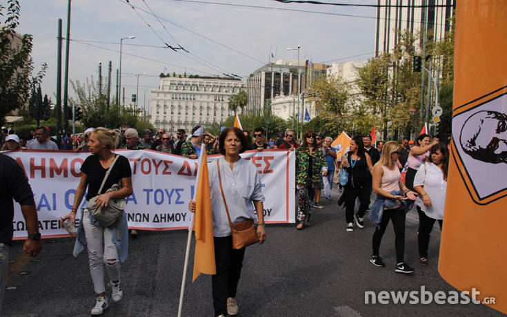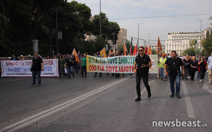 Οι εργαζόμενοι στους δήμους πραγματοποίησαν συγκέντρωση διαμαρτυρίας έξω από τα γραφεία της Ομοσπονδίας στην Πλατεία Καραϊσκάκη και στην συνέχεια προχώρησαν σε πορεία προς το υπουργείο Εσωτερικών.