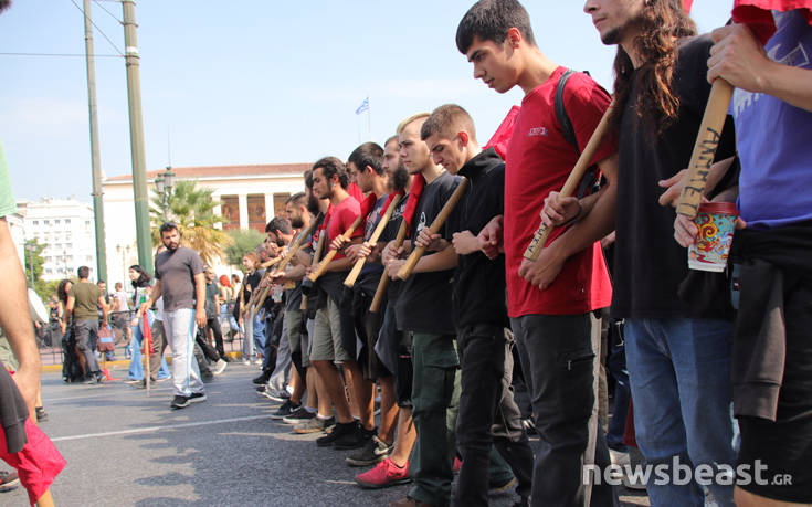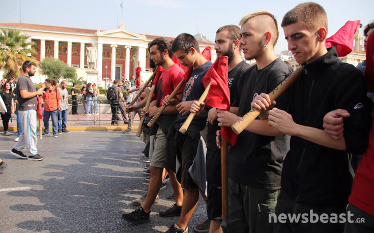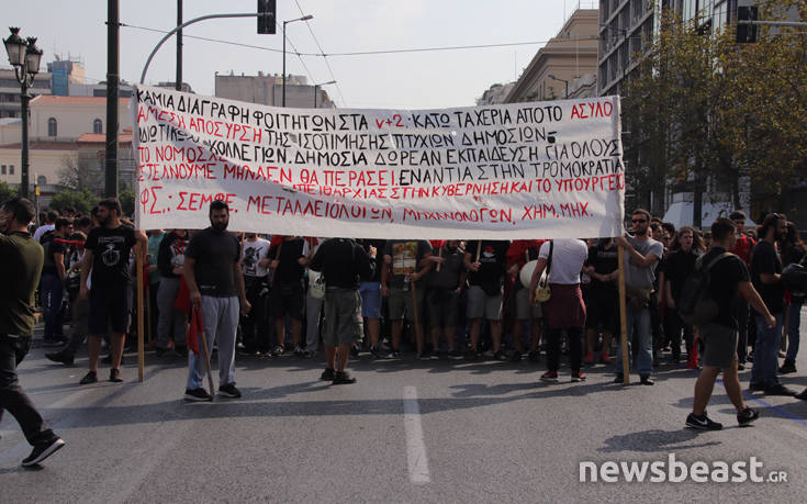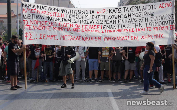 Με σημαίες και πανό οι φοιτητές διαμαρτύρονται για τις αλλαγές στον χώρο της εκπαίδευσης ενώ η συγκέντρωση ήταν προγραμματισμένη στις 12:00 στα Προπύλαια.